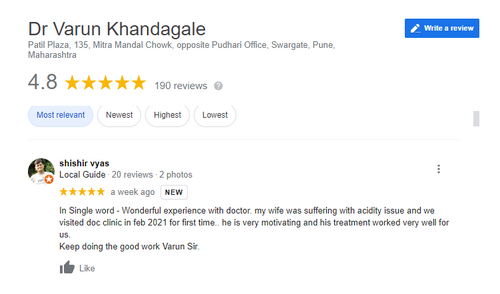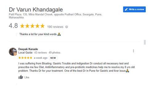 I was suffering from Bloating, Gastric Trouble and indigestion Doctor conduct all necessary test and prescribe me few Diet, Anti-inflammatory and pre-probiotic medicines help me to resolve my 8 yrs old problem. Thanks Doctor for your treatment. One of the best Doctor in Pune for Gastric and liver issue